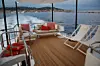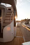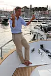 Dagen er på hell og solnedgangen gjør turen ekstra vakker. Vi setter oss på en av de to solsengene på fordekket. Og jo da, det føles luksuriøst, det å cruise ut og nærmest ikke føle hekksjøen fra alle de andre båtene med varm fartsvind, med Cannes bak og Middelhavet foran oss.