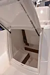 Styrekonsollen har et digert stuerom som kan gi plass for et lite toalett og i baugen er det rikelig med solsengplass. Solsengen kan naturligvis bygges om til en v-formet sittebenk.