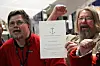 – Var det gode pølser her på standen og kanskje? antyder Christian "Fossern" Foss, som sammen med Berserk-kompis Rune "Supern" Olsgaard har vært med gjengen rundt på de forskjellige standene.