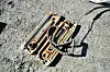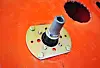 Denne braketten klamrer fast styrerøret og monteres over kulen som skimtes i hullet. Ved å la de indre boltene være løse, og la de ytre boltene såvidt henge på mutterne, kan braketten åpnes nok opp og dyttes på plass.