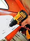 Det følger en boremal med bruksanvisningen. Ikke bor for nær gamle hull, og sjekk at snekken vil vende rett vei.