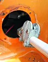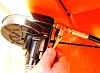 Ut av den svarte plastmutteren på det nye styrerøret stikker styrestaget, som igjen sitter fast på enden av den indre styrekabelen. Staget er festet til motoren via et endeledd.
