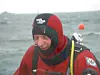 Karoliussen og maskinist Ove Høyem kom seg til havaristen på en MOB-båt. Da de hørte bankelyder fra skroget trosset maskinisten den stive kulingen, satt på skroget og snakket med fiskeren under hele redningsaksjonen.