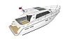 Ser vi på tegningene som produsenten har frigitt, ser vi at det blir utvendig dørkplass helt akter med en L-benk. Båten får også en stor badeplattform, med lett adkomst til dollbordene. Innvendig er det ingen tegninger ennå, men bra med vinduer og to takluker bør gi bra med lys inn til styrehuset.