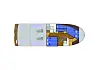 Båten har har walkaround-dekk og et stort akterdekk utvendig. Den har også en stor flybridge med oppgang og nedgang både fra førerhuset og akterdekket.