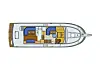 42-foteren er en typisk trawler og med sin bredde på 4,3 meter blir det bra med plass. På nederste dekk er det ikke mindre enn tre doble sovakabiner, med tilhørende to baderom og eget dusjrom. Går vi opp til neste dekk har båten en stor salong og bysse, og på øverste dekk er styrhuset og enda en salong. Med 460 hestekrefter i motorrommet skulle vi tro at dette blir en dyr båt, men inkludert alle avgifter koster den 3.580.000 kroner.