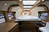 Forkabinen, som er hovedkabinen, er et kapittel for seg, og skiller seg ut fra alle tidligere kabiner vi har sett. Selv om båten er spiss og smal i forpiggen er plassen utnyttet maksimalt, og gir ekstra romfølelse med store vindusflater. På taket er det en lang rekke vinduer som slipper inn lys, i tillegg til tre store vinduer på skrogsiden. Er ikke utsikten nok, har produsenten lagt til rette for en plass til flatskjermen på skottet.