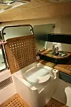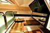 Goldfish 30 SC har mange lekre detaljer, og skiller seg ut når det gjelder interiørløsningene. På dekk er det rikelig med sitteplasser, kjørekomforten er tilsynelatende på topp, om man foretrekker å sitte eller stå. Skal du ha båt med lyd, er det rikelig med høytalere og en subwoofer, med mulighet for tilkobling av i-Pod. Innvendig er det smarte, delikate løsninger, hvor man med noen enkle grep har full lengde for nattesøvnen med utsikt gjennom store takvinduer og en LCD-skjerm på veggen. Det er også noe man kan kalle midtkabin, men den egner seg kun for de minste.
