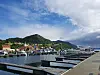 Vi fortøyer ved et bryggeanlegg som vi sjelden har sett maken til. Her er 85 plasser med solide båser. Hver tiende meter er det store vann- og strømposter som er utstyrt med livbøyer og brannslukkere. Her er også nødstiger hver tiende meter, og kraftige kryssholt i syrefast stål. Ved strømpostene står det lysmaster, og her er benker og bord mellom lampene.