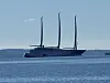 A: Verdens største seilassisterte motoryacht "A" ligger for anker i Trieste beslaglagt av staten Italia.