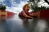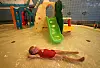 Vel ute av bassenget, rekker de ikke å bli tørre bak øra før de finner den første av tre lekeparker de skal innom.