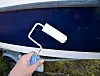Jeg liker å bruke en skumrulle til bunnstoff. Det gir et tynt og jevnt lag. Kjemien i bunnstoffet er tøff på skumrullen, men kjemien virker å være forskjellig. Non-Stop tok rullen kjapt, og var ferdig etter noen få kvadratmeter. Verken Ag2 eller Biltema så ut til å gjøre skade på malingsrullen.