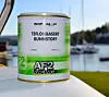 Mange sverger til hvit bunnstoff, tross for at eksperter fraråder denne fargen. Bunnstoffet blir mer effektivt med mørk farge. Non-Stop er gulaktig før man rører i boksen. I det bunnstoffet er på skroget ser det OK ut, men dekkevnen er ikke så bra som konkurrenten. Jeg vil gjerne legge et tynt lag, slik at det ikke bygger seg opp med bunnstoff i bunn, men Non-Stop har jeg lyst til å legge på to lag, men holder meg til ett. Ag2 dekket bedre, men fargen er ikke hvit. Grå-hvit står det på boksen. På skroget så den heller ut som lys lilla.