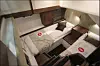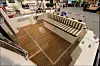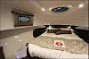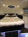 Dette er en helt ny størrelse for den finske produsenten, som har lagt vekt på at den både skal være mer elegant og sporty i utseende. Styrehuset har tre dører, det vil si en mot hver side og en stor dør ut til akterdekket. Når vi går om bord i båten på messa, får vi et inntrykk av å være i en større båt. Akterdekket er stort, og når vi går inn styrehuset fra akter får vi leideren til akterkabinen på babord side. Dette er en stor akterkabin, og da mener vi stor, med fine enkeltkøyer og panoramautsikt i hekken, akterover.