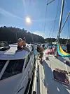Videre dro vi for å se Arendal Water Festival og VM i Speed Cat. Der var det mye action både med båter som snurrer og båter som krasjet.Vi besøkte også Sara og Noras besteforeldre på hytte i Arendal før vi på søndag dro til Arendal gjestehavn. Der møtte jeg enda en familie som inviterte meg med videre på tur. For en fest det har vært, tusen takk for turen, Nora og Saga.