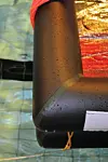 CONTAINER: La båndet rundt flåten være. Det ryker når flåten bløser seg opp.
